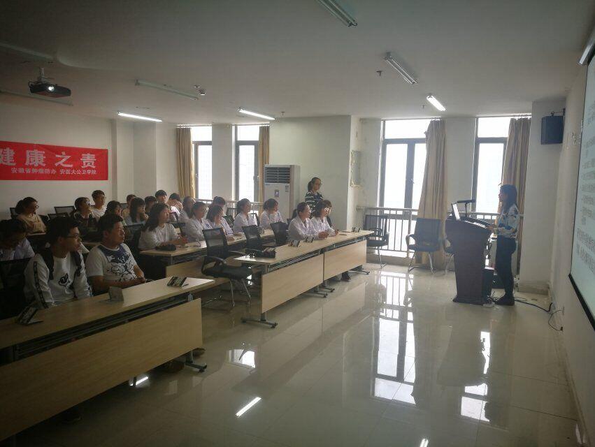 邀请安徽省肿瘤防治办公室和安徽省胸科医院的专家开展专题讲座。讲座上,专家认真讲解了吸烟的危害和我国禁烟的严峻形势,并重点介绍了大学生吸烟的现状和控烟形势的严峻。同学们深刻认识到身为一名公卫学子所肩负的责任,坚定了远离烟草的信念和投身禁烟宣传的决心。
