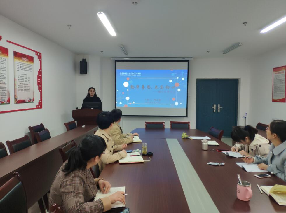“辅导员学习会”是公卫学院继政治理论学习、辅导员工作例会后开辟的提升辅导员理论学习和职业能力提升的新路径,学院将以此为契机,长期坚持开展此类专题学习活动,为进一步提高辅导员综合能力,提升辅导员队伍专业水平,更好培养、管理、引导、服务大学生成长成才打下坚实基础。(BB贝博艾弗森官方网站 陈伟)