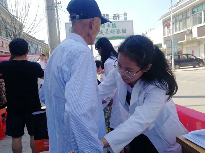 “好学力行在路上,调研献策助健康”实践队与砀山、上饶、南平等多个市级县级疾病预防控制中心合作,深入几十个社区开展常见慢性病、传染病、职业病等公共卫生与健康的宣传和教育。“筑梦保‘胃’”团队今年是第三年走进庐江地区开展服务,志愿者通过知识宣讲、发放宣传手册等方式向当地居民普及胃病防治知识,组织专家开展义诊,并为胃病患者免费发放药物。