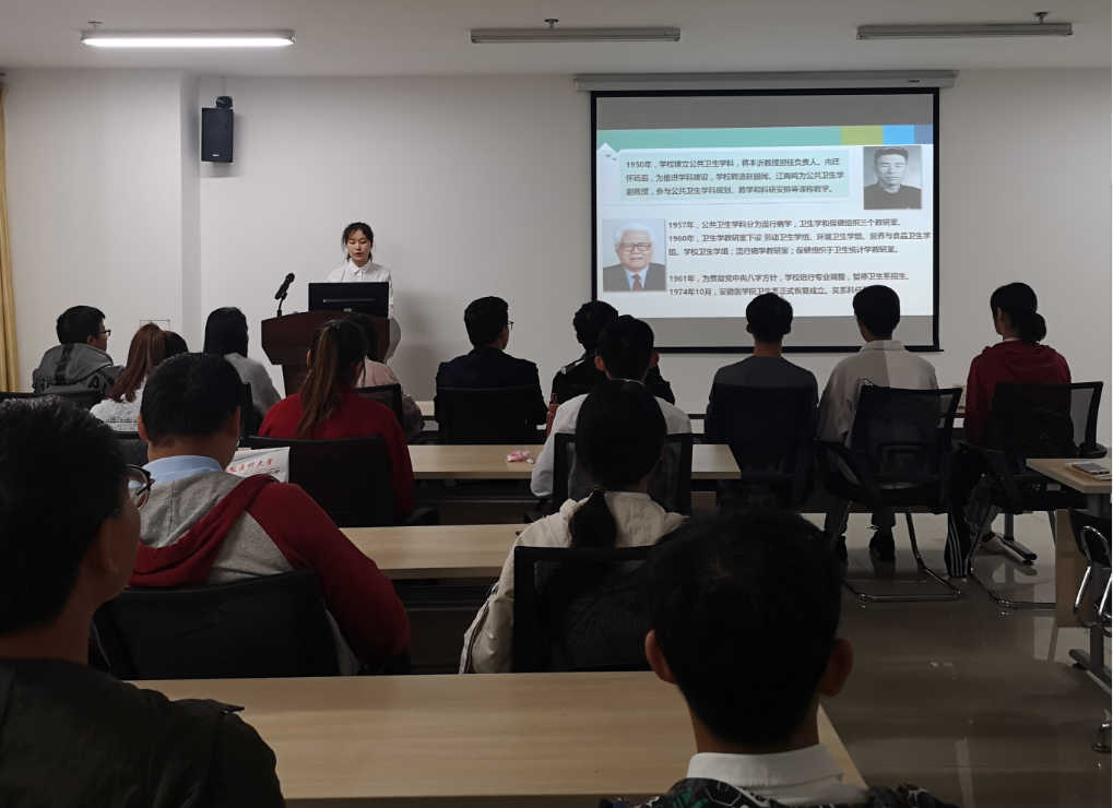 比赛现场,十二位参赛选手以院史为主线,用一个个动人的故事、一句句感人的话语、一帧帧精美的图片,将学院六十年砥砺前行中的辉煌历程、奋斗担当、领军人物以及重大成就精彩呈现,引领新生们与院史对话、知院情于心。选手们有的从公卫发展历史中经历的磨难与冲突切入,通过对整个公卫发展历史的叙述,感悟公卫精神的内在传承;有的介绍了卫生系从1959年创办到1961年停招再到1974年正式恢复的跌宕起伏发展历程,叙述了老一辈公卫人在风雨飘摇年代始终把教书育人和献身卫生事业作为己任的坚守;还有的从血吸虫病的防治展开,讲述公卫第一批创业者不惧环境恶劣、不畏条件艰苦,从未中断搞好疾病预防维护健康的初心。
