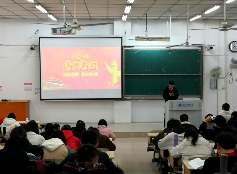 主题班会护宪法。学院各个小班围绕“弘扬宪法精神 厚植爱国主义情怀”主题,结合党的十九届四中全会中与法治相关的内容,开展主题班会。通过交流讨论,同学们进一步学习了宪法的修订历史、审议历程、具体内容及重要意义,感受到党的领导下国家制度意识的不断强化和制度执行力的持续提升。