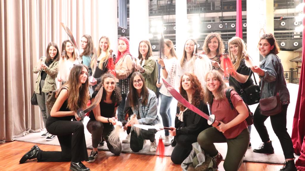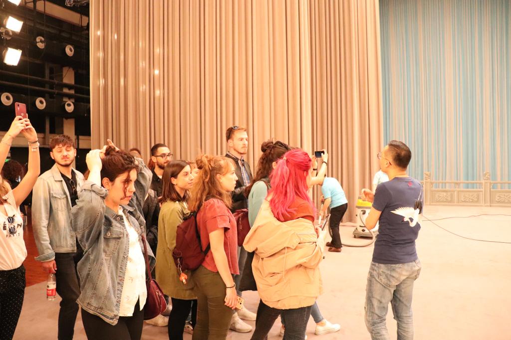 5月19日在Beat365官方网站Beat365官方网站对外汉语系就读的22名意大利罗马大学留学生在夏菁老师的带领下来到人民剧场,观看了中国国家京剧院名家京剧《红桃山》的录制。