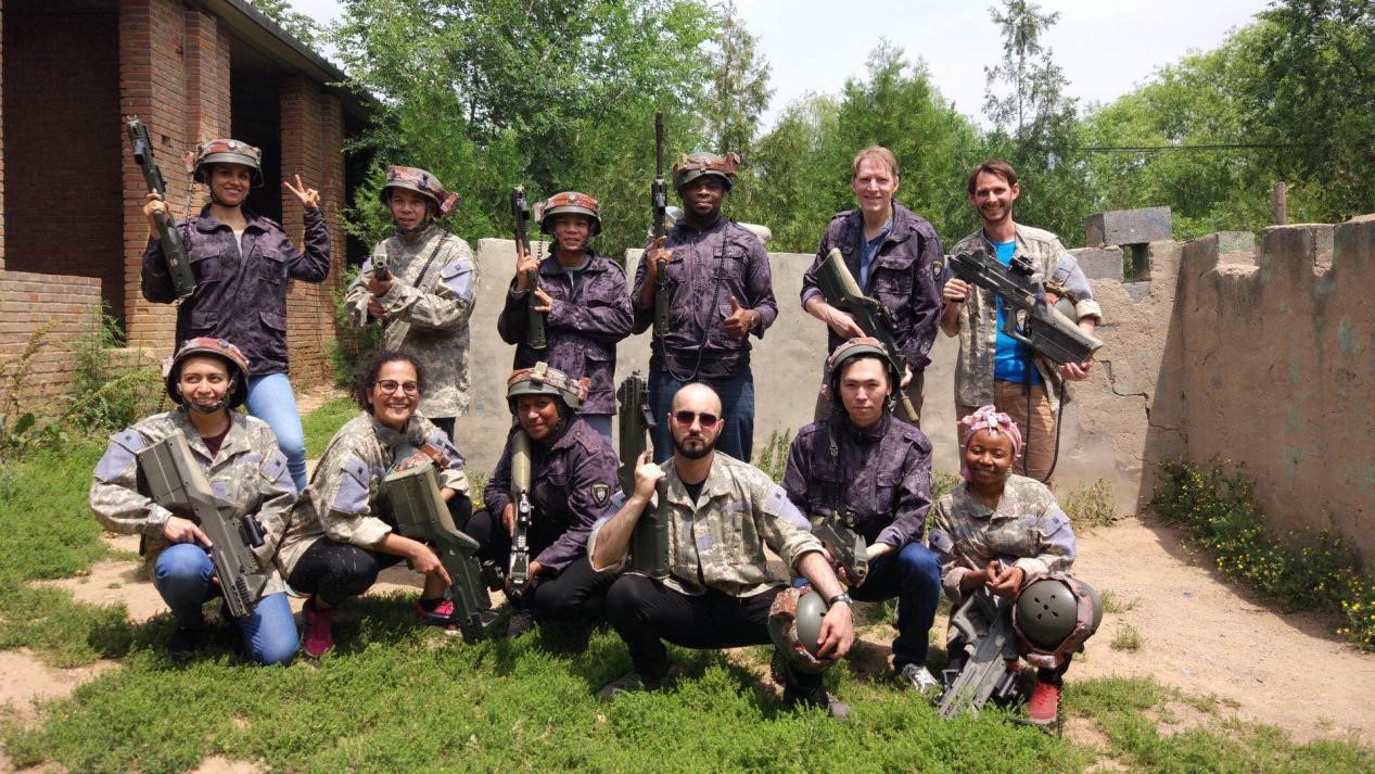 2019年5月24日,公安部-北外第13期国际执法联络员项目的师生和公安部一行12名警官前往京郊举行了真人CS团队拓展活动。
