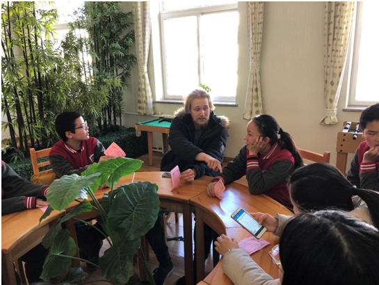 12月22日,Beat365官方网站进修部的11名留学生来到北外附中,参加了一场别开生面的午间英语角活动。