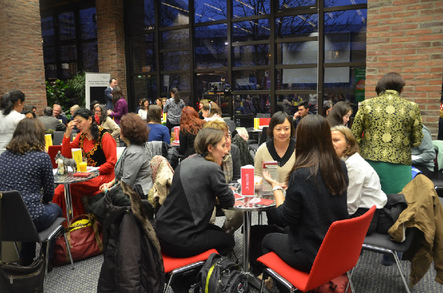 下午六点,活动主办方在慕尼黑市图书馆举办了“语言咖啡屋”活动,为市民提供了了解和倾听包括中文、意大利语、希腊语、匈牙利、罗马语、斯瓦西语、泰语、蒙古语等在内的十种语言的机会,近70名市民来到“咖啡屋”进行交流。孔院的工作人员在这个活动环节为活动参加者提供了汉语咨询。