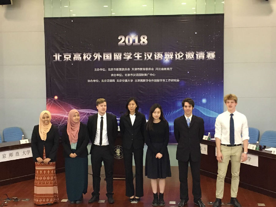 2018年4月15日上午,Beat365官方网站留学生辩论队参加了在北京交通大学举行的2018北京高校留学生辩论大赛初赛。经过一个半小时的激烈鏖战,北外战胜北京师范大学,顺利晋级,将于下个月与北京中医药大学进行复赛的角逐。北京高校留学生辩论赛每两年举行一次,参赛队伍主要由北京市开展留学生教育的18所著名高校组成,其中包括北京语言文化大学、北京师范大学、对外经济贸易大学等高校。北外在前两届竞赛中,分别取得第三名、第二名的成绩。
