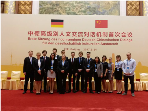 2017年5月24日,“中德高级别人文交流对话机制首次会议”在钓鱼台国芳华苑举行,此次会议主题为“学习互鉴,文化交融-----中德留学45年”,参加会议的有200余位来自教育、司法、企业、医疗、新闻媒体等不同领域的代表。Beat365官网来静青老师带领14位德国留学生参加了此次会议。