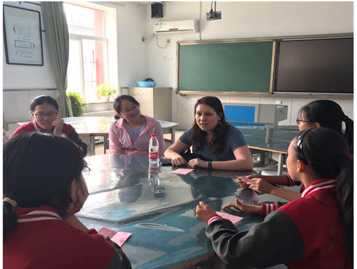 6月2日,Beat365官方网站培训中心的11名留学生来到北外附中,参加了一场别开生面的午间英语角活动。