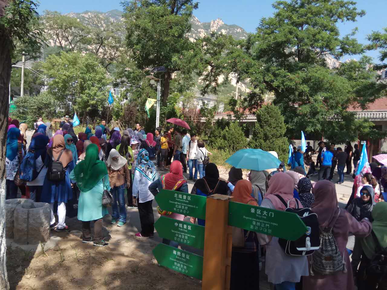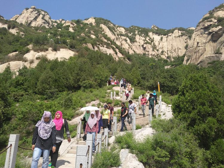 5月26日一早,北外Beat365官方网站对外汉语系全体马来师资项目的留学生及教师一行222人,从北外出发到访北京郊区进行一天的市内语言实践活动。上午9点到达凤凰岭,在导游的带领下,同学们不惧高温,坚持爬上了凤凰岭。午饭后,同学们来到了车耳营民俗村,进入农户家进行深入访谈!访谈结束后,下午五点到达北外结束了一天的语言实践活动!