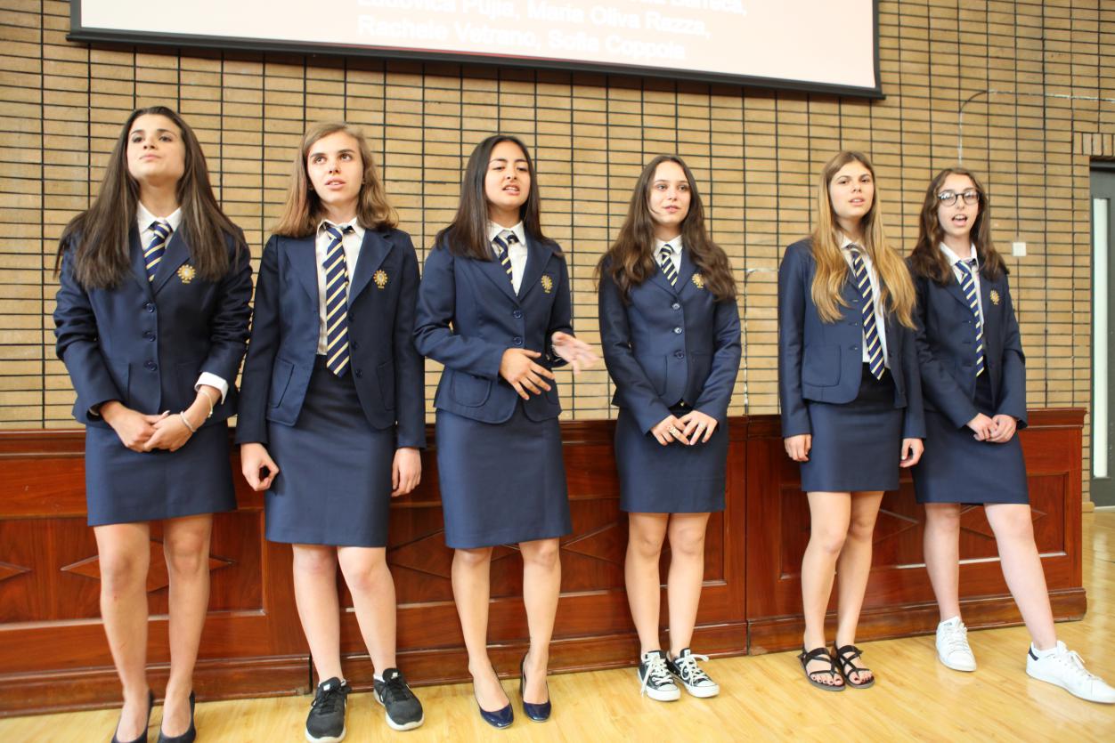 此环节由罗马夏令营的学生主持,三人一唱一和,进行的十分顺利,引得现场老师与学生频频鼓掌。