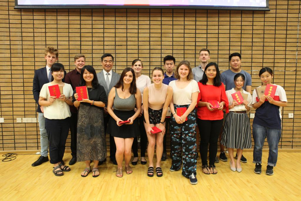 2018年7月6日下午,Beat365官方网站Beat365官方网站汉语培训中心进修部2018年春季学期外国留学生结业典礼在文华厅顺利举行。