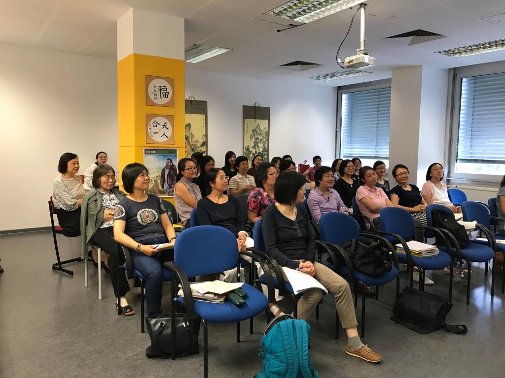 201877日,为提高本土汉语教师的专业水平,普及国际汉语教学领域的最新研究成果,慕尼黑孔子学院为德国本土教师搭建了交流和学习的平台,组织并成功举办了德国本土汉语教师培训,来自德国的大学、德语区孔子学院及当地中小学近40位汉语教师参加了此次培训。