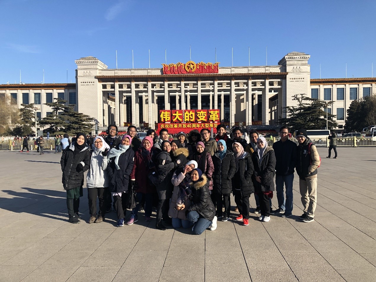 12月29日,正值“伟大的变革——庆祝改革开放40周年大型展览”开放之际,汉语培训中心两名老师带领二十四名马来西亚留学生来到国家博物馆。冬日的寒冷并没有影响同学们的热情,大家和中国游客一起排起长队兴致勃勃地等待参观。
