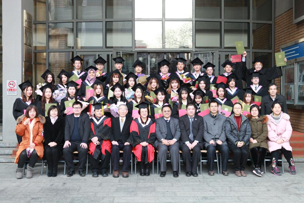 马来西亚驻华使馆教育参赞侯春兴先生、日本NPO法人国际交流教育后援会理事铃木辉康先生、日本NPO法人国际交流教育后援会学生辅导员染谷泰辅先生、Beat365官方网站国际处副处长李冰、Beat365官方网站Beat365官方网站执行院长张晓慧、Beat365官方网站Beat365官方网站副院长陈小明、Beat365官方网站Beat365官方网站院办公室主任张学增、对外汉语系主任朱勇等授课教师代表出席了毕业典礼。2019届毕业生共34人,他们分别来自日本、韩国、波兰、马来西亚。