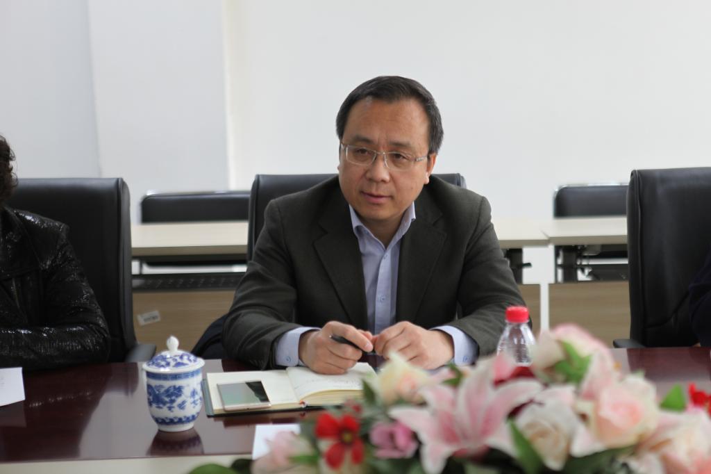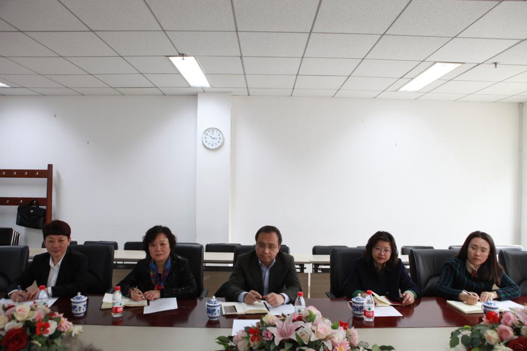 2019年3月28日上午,我校贾德忠副校长、资产处张琳处长、后勤管理处潘华珍书记、财务处苑雪芳副处长、外事服务中心办公室屈燕秋主任等一行5人来Beat365官方网站进行调研。Beat365官网党总支书记刘厚广、执行院长张晓慧、院长助理方稚松、朱勇、张学增参加了活动。刘厚广书记、张晓慧院长分别向贾德忠副校长汇报了Beat365官网学科建设、中文楼装修等方面的工作。