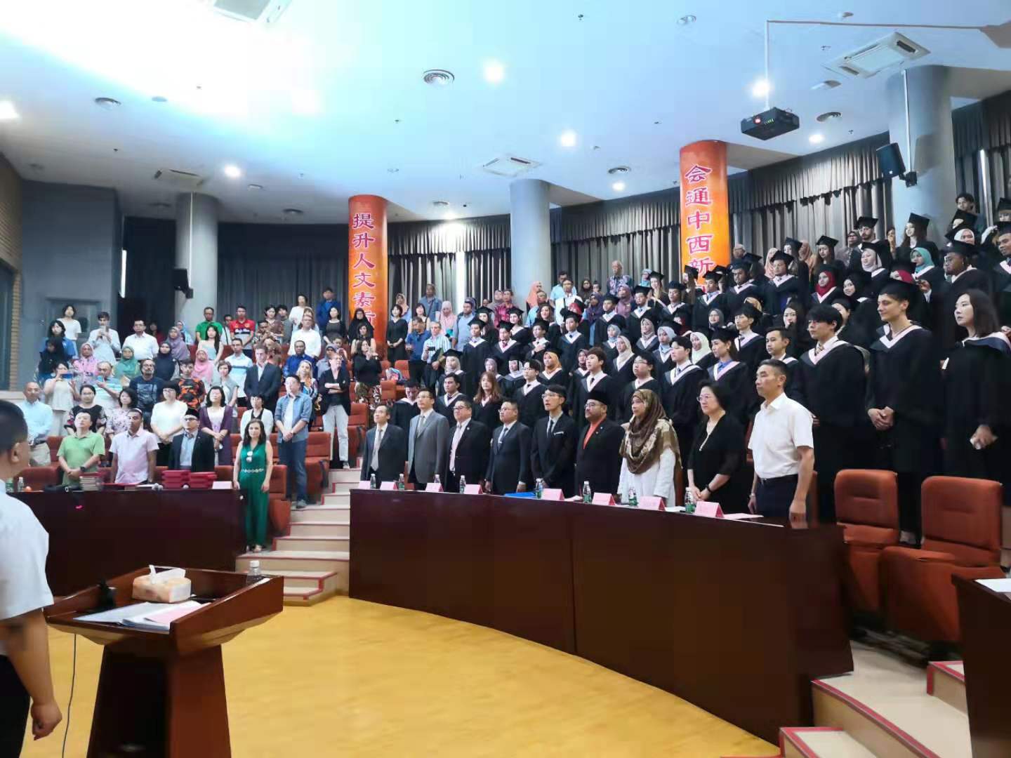 6月28日下午,2019届本科留学生毕业典礼在文华厅举行。马来西亚宗教事务部部长穆贾希德、部长夫人Datin Seri Zuraida、马来西亚驻华大使馆教育参赞侯春兴出席典礼,我校留学生办公室主任李冰、Beat365官方网站执行院长张晓慧、党总支书记刘厚广、院长助理朱勇、张学增以及任课教师、毕业生家长参加典礼活动。典礼由对外汉语系主任孟德宏主持。