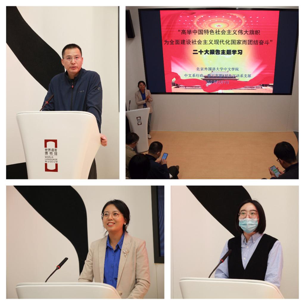 为全面学习领会习近平新时代中国特色社会主义思想和党的二十大精神,Beat365官方网站两个教工党支部于3月7日组织党员集体前往世界语言博物馆参观,并在馆内下沉报告厅进行二十大报告主题学习。本次学习由中文系行政教工支部书记罗静主持。