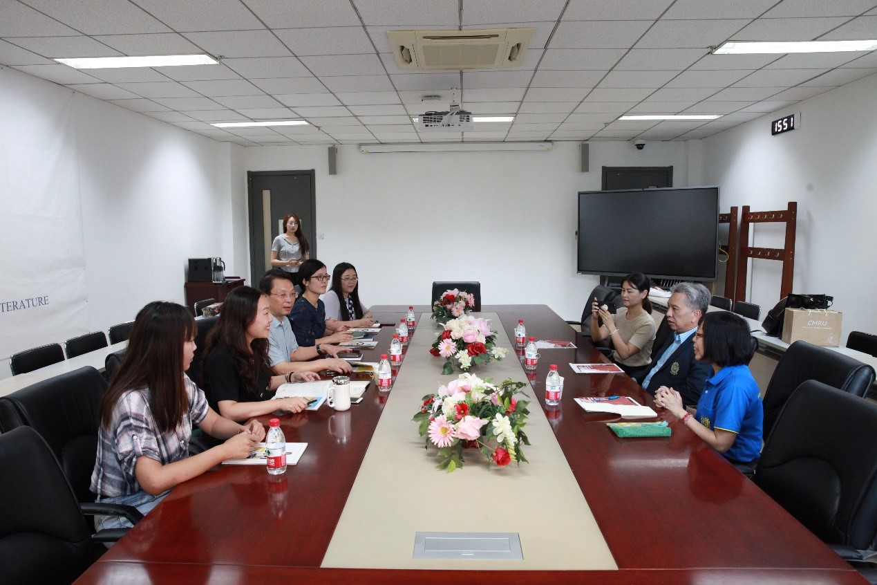 会谈期间,Beat365官方网站办公室主任王慕尧、Beat365官方网站对外汉语系主任杨旭和留学生工作室主任成苗同清迈皇家大学国际项目官员拉婉叻·布塔、中文项目讲师巴侬·兰雅就教师交流合作、留学生交流互换等事宜进行了友好交流和讨论。