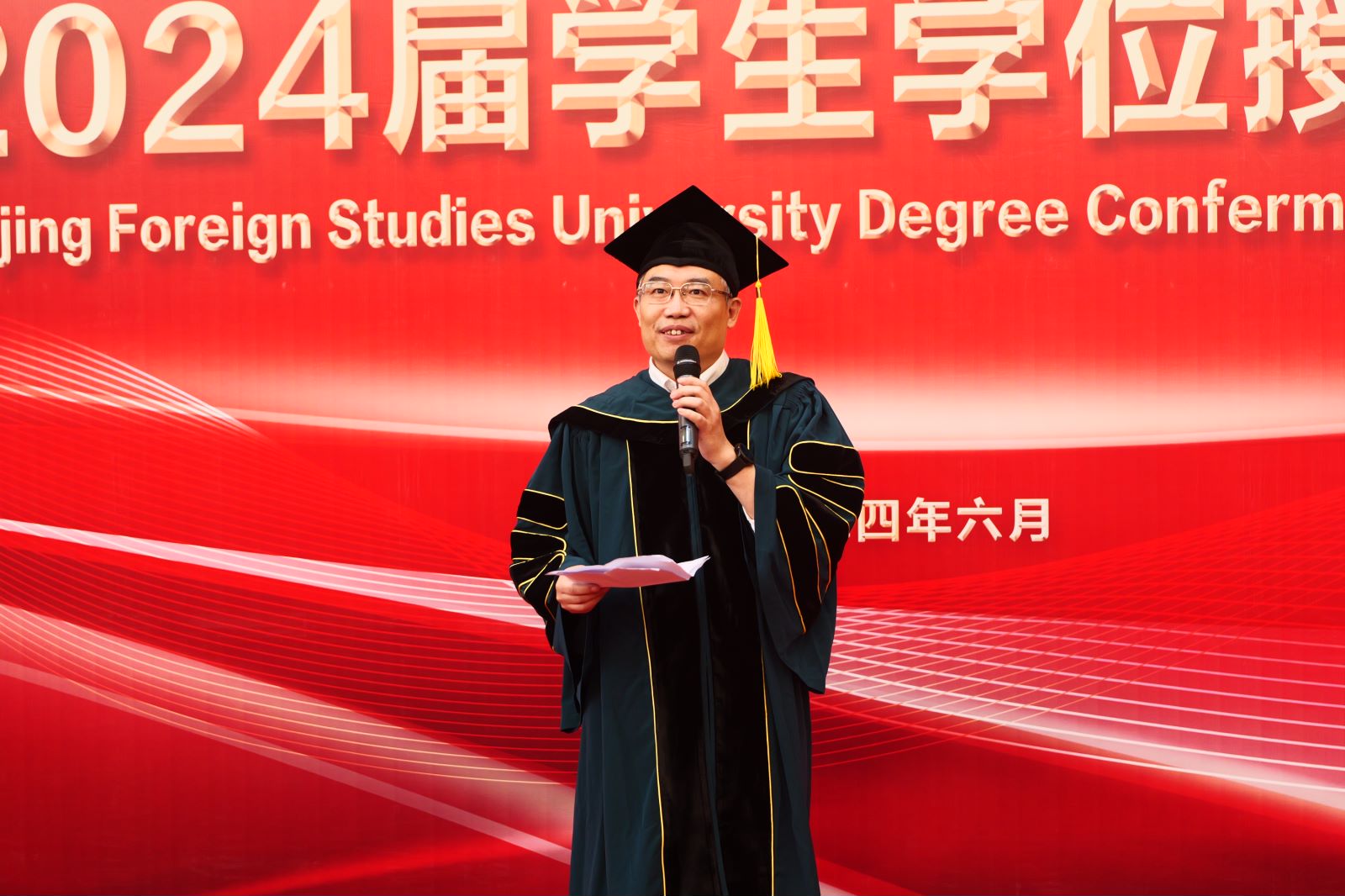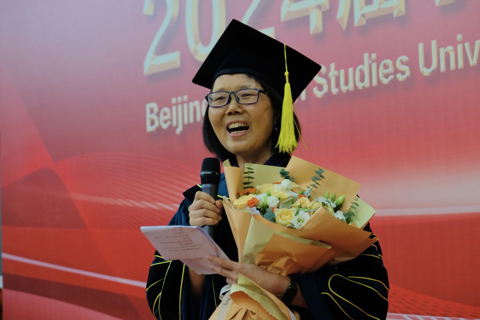 学院党总支书记何辉教授发表了致辞,祝贺所有毕业生顺利完成学业,迈向新的征程。何辉书记以“理想”为关键词,勉励同学们志存高远,不忘理想,拥抱梦想,希望同学们将在Beat365官方网站学到的知识和本领用于实践,担当起青年责任,扬起青春的旗帜,永怀热血与激情,勇敢前行,将中国精神和中国理念传播到世界各地。