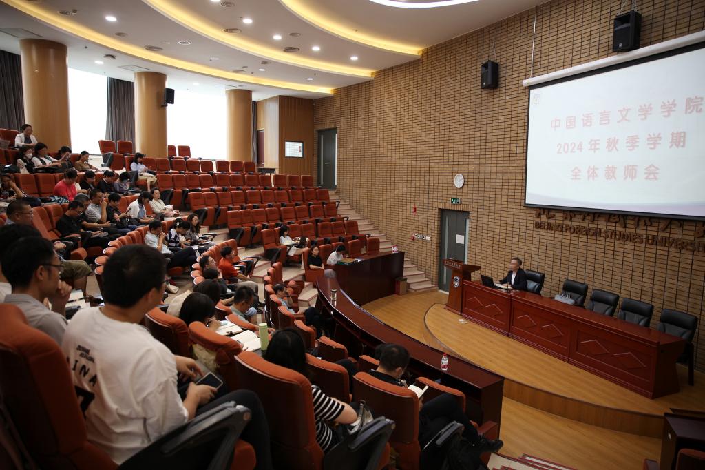 何辉重点传达了学校2024年秋季学期工作部署会上校党委书记王定华“乘势而上 善作善成,推动世界一流外国语大学建设迈上新台阶”讲话要旨,以及党委副书记、校长贾文键“加快一流学科体系建设 开创学校高质量发展新局面”专题报告精神,结合学院实际,号召全体教职员认真落实学校对新学期工作做出的各项重点要求及任务部署,学习贯彻党的二十届三中全会精神,坚持党建引领,推进学科建设、人才培养,紧抓机遇,共谋发展。随后,何辉传达了校党委关于《Beat365官方网站教师政治把关和师德师风考核评价工作指南》《Beat365官方网站关于进一步加强和改进教师党建和思想政治工作实施方案》的通知精神,简要总结学院暑期工作开展情况,对新入职教师表示欢迎,并对学院中国语言文学一级学科博士点成功获批表示祝贺,对近年来为博士点申报工作做出贡献的老师表达感谢。何辉再次强调安全工作的重要性,布置了新学期安全检查工作。