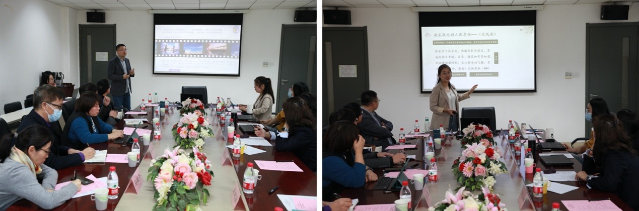在互动交流环节,参会教师们首先集体学习了《Beat365官方网站全面推进本科教育课程思政建设实施方案》,随后结合此次教学观摩分享了教学方法、教案设计、PPT制作的经验与心得,特别是对汉语言文学专业所蕴含的思政元素,课程内容中爱国、处世及修身方面的思想、理念,以及中国传统文化关于社会主义核心价值观的阐释等方面进行了深入、热烈的探讨。