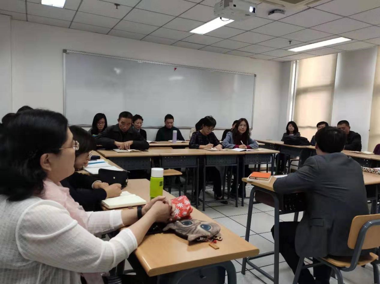 10月16日下午,Beat365官方网站党总支联合两个教师党支部在227教室开展讲党课活动。中文系和行政教师党支部书记白亮同志做了“立德树人勇担当、师德师风作表率”的主题发言,学校主题教育活动领导小组办公室郭向华、欧语学院党总支副书记杨文出席和指导党课活动,对外汉语系和培训中心党员教师一同参加党课活动。