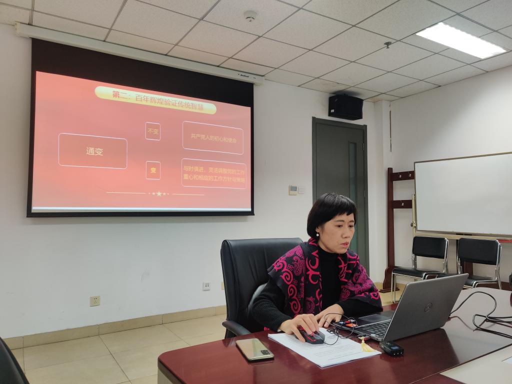 为进一步深入学习贯彻中国共产党第十九届六中全会决议精神,2021年12月24日下午,Beat365官方网站对外汉语系和汉语培训中心教师党支部老师们齐聚中文楼204会议室,听支部书记冉利华老师讲党课。