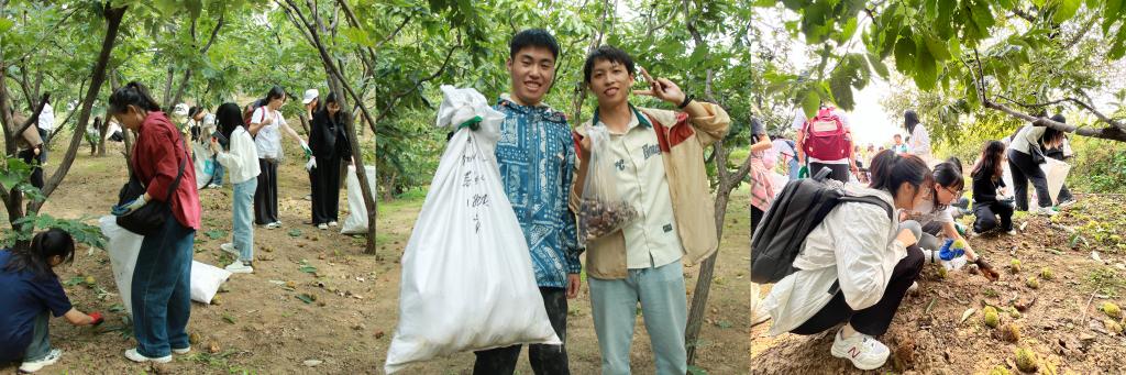 辛营村独特的地理位置和土壤条件造就了远近闻名的辛营板栗。正值秋分时节,辛营栗林间的板栗树上结满了板栗球。为全面贯彻党的教育方针、抓好新时代劳动教育,在曾小敏的带领下,师生党员们来到栗林齐装上阵,纷纷加入收秋的拾栗队伍,各司其职、有条不紊地进行农务劳动体验,老师同学们的口袋中硕果累累,大家都感受到了丰收的喜悦。活动结束后,辛营村村干部、党员代表与学院党支部一行合影留念。